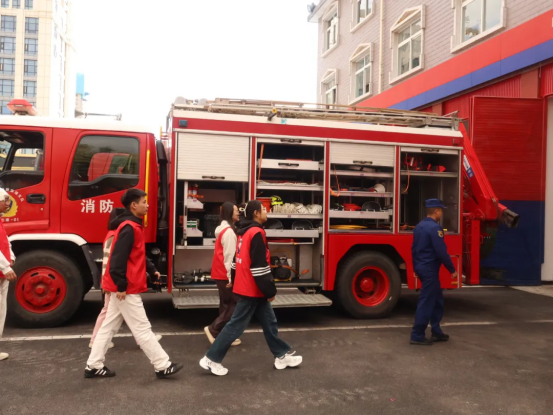 在活动的最后阶段,师生们有序参观消防救援车辆及消防员营房,通过了解日常训练与出警流程,对消防工作的专业性、艰巨性有更深层次的认知。在学生代表分享环节,2024级工程造价2班陈浩同学表示:“此次活动极大地提升了我的消防安全意识与应急自救能力。我将积极担任安全宣传员,把所学知识传递给身边同学,为共建平安校园贡献一份力量。”