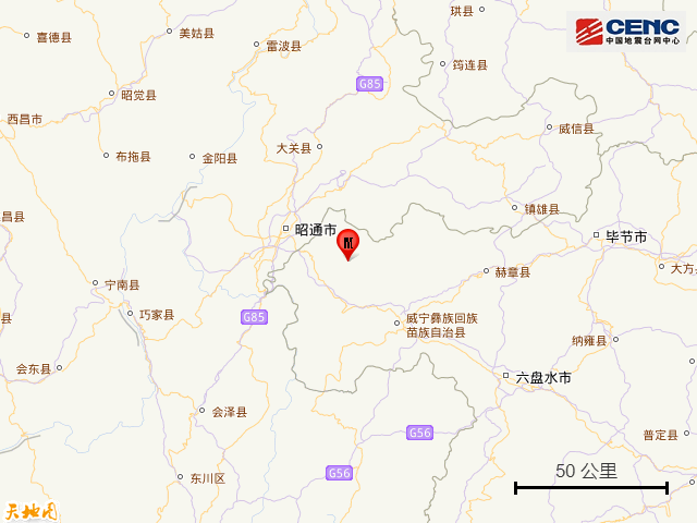 速报参数:据中国地震台网正式测定,1月10日4时1分在贵州毕节市威宁县发生4.5级地震,震感明显,震源深度10公里,震中位于北纬27.17度,东经104.03度。