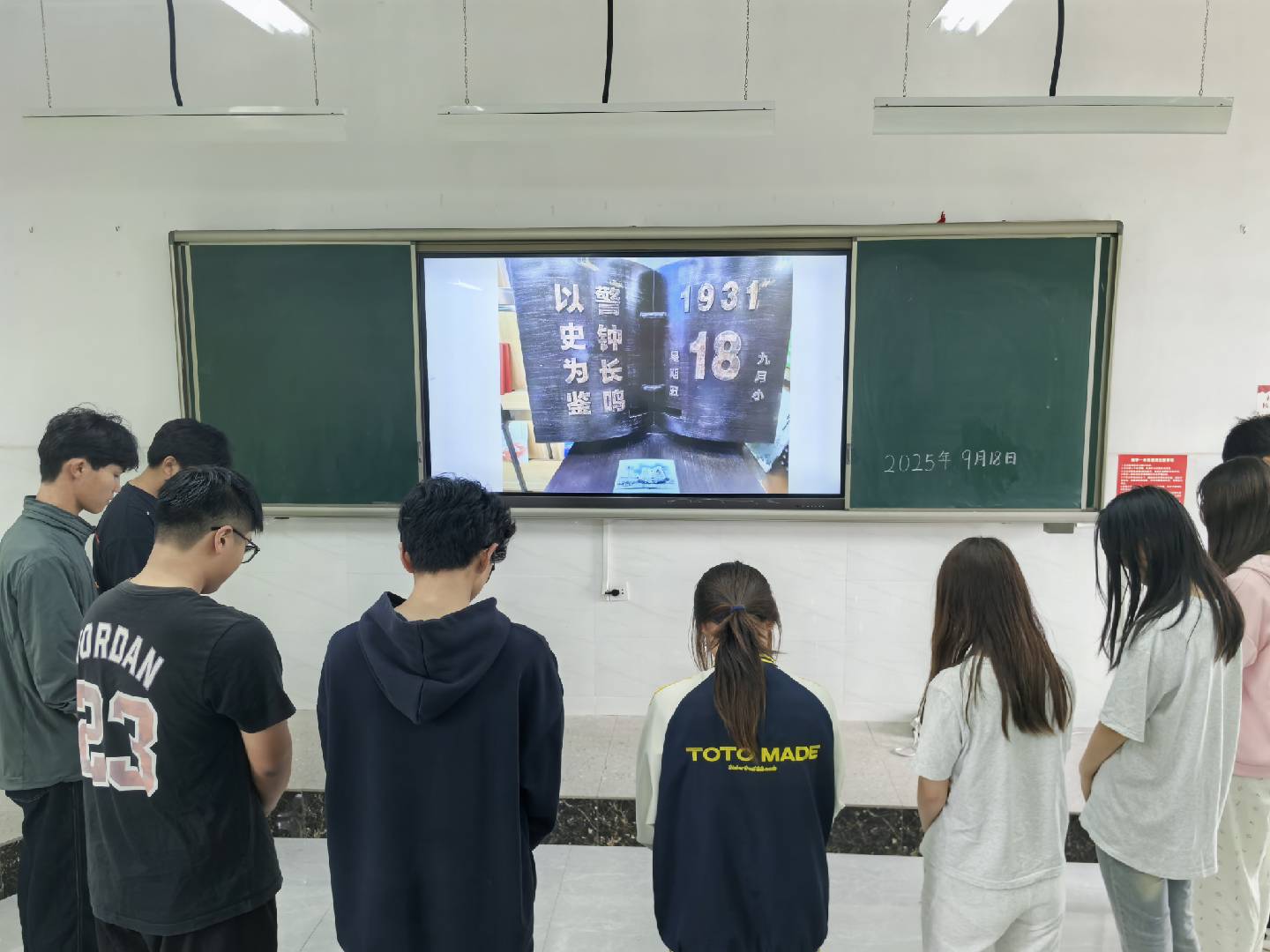 学生会干部在1教西区408教室开展“铭记‘九一八’,青春勇担当”主题团日活动。通过集体默哀、重温入团誓词等仪式,深切缅怀为民族独立英勇献身的革命先烈,并围绕“新时代青年的历史责任”展开热烈讨论。大家郑重承诺,将以奋斗姿态传承抗战精神,为实现中华民族伟大复兴贡献青春力量。