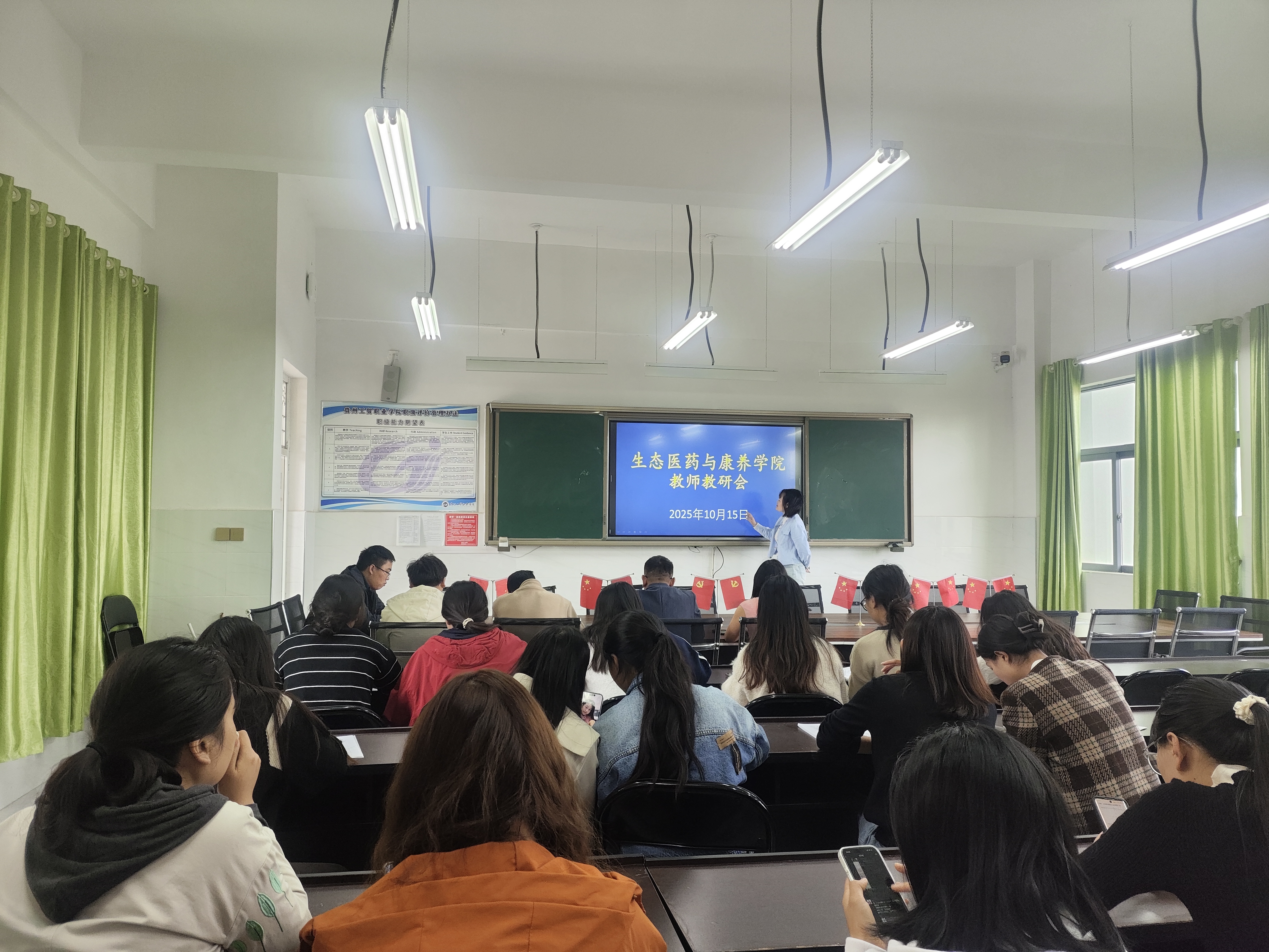 为深入贯彻落实学校教学质量提升工程,进一步规范教学管理,改善实践教学条件,确保本学期教学工作有序推进。10月15日,生态医药与康养学院组织召开专题工作会议,全面部署期中教学检查与实验实训室整改两项重点工作。会议由医护教研室主任韩贤琴、康养教研室主任马丽莎共同主持,学院全体专任教师参会。