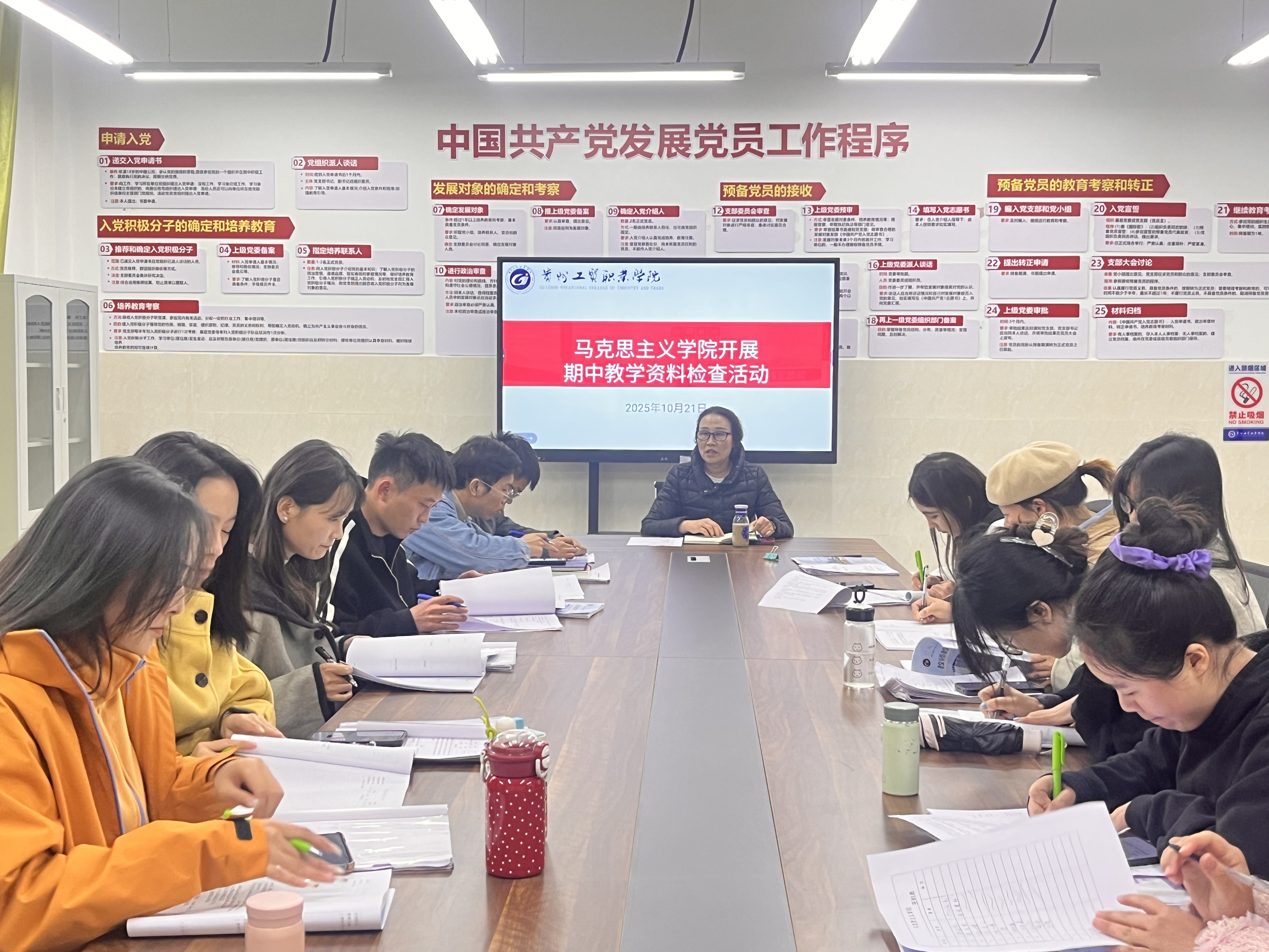 为强化教学过程管理,进一步规范教育教学,马克思主义学院于 10 月 13日至 10月22 日开展期中教学检查工作,同步组织教师座谈会与学生座谈会,构建 “检查 - 反馈 - 整改” 全链条质量提升机制,以进一步推动思政课教学改革向纵深发展。我院成立由院长邓天丽牵头、各教研室主任为组员的教学检查小组,对照《贵州工贸职业学院检查要点》对学院教师的期中教学材料开展规范性检查,主要检查教师课程标准、教案、课件、教学进度表及教师工作手册等材料,并重点关注学习通平台在教学过程中的实际运用情况,确保教学运行规范有序。