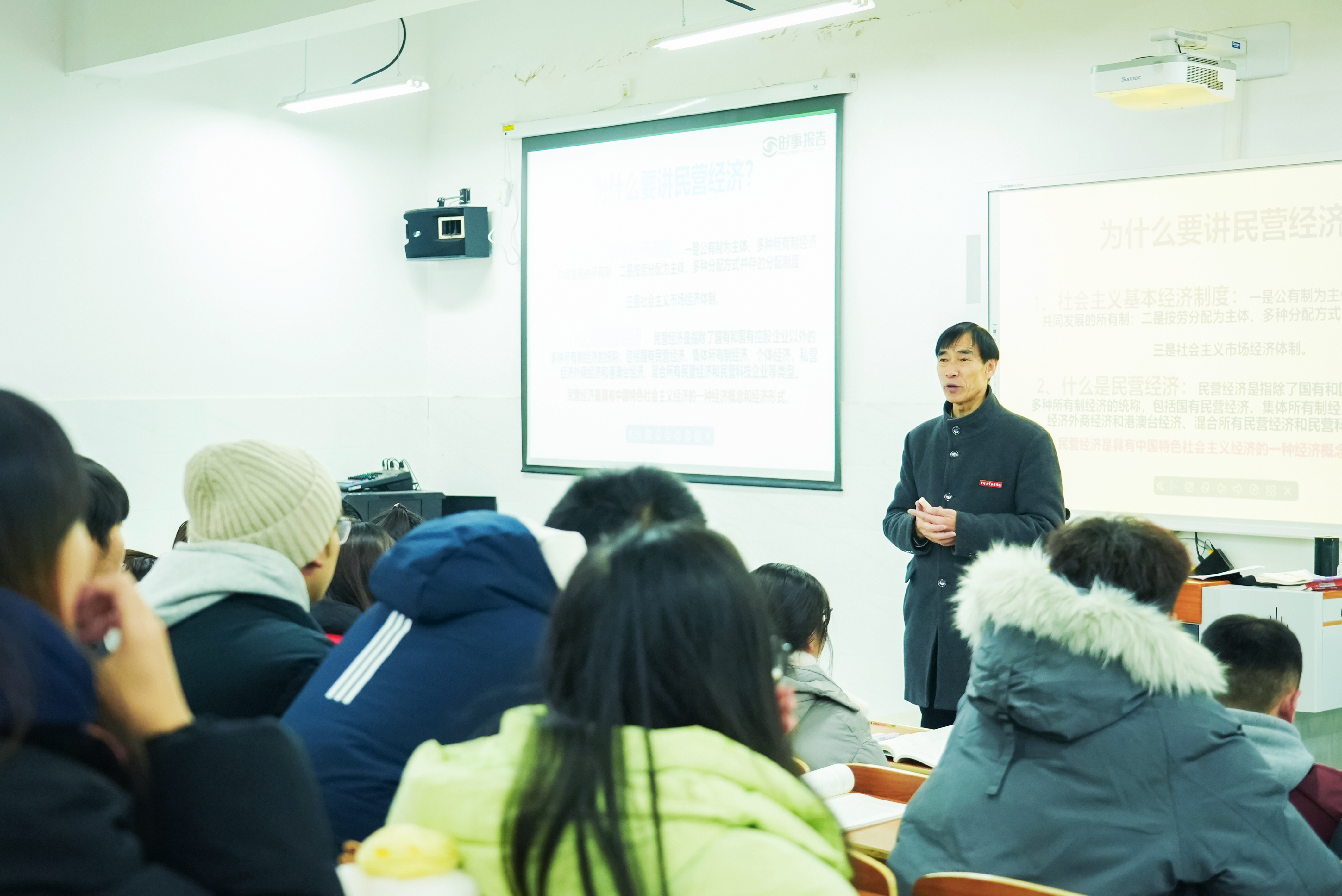 整场授课内容丰富、逻辑清晰、论述深刻、气氛活跃。同学们表示,通过这堂生动的形势与政策课,对民营经济的现状与未来有了更全面、更深入的了解,对国家相关政策有了更准确的把握,增强了对国家经济发展的信心,也激发了对自身专业深入学习和思考的兴趣。