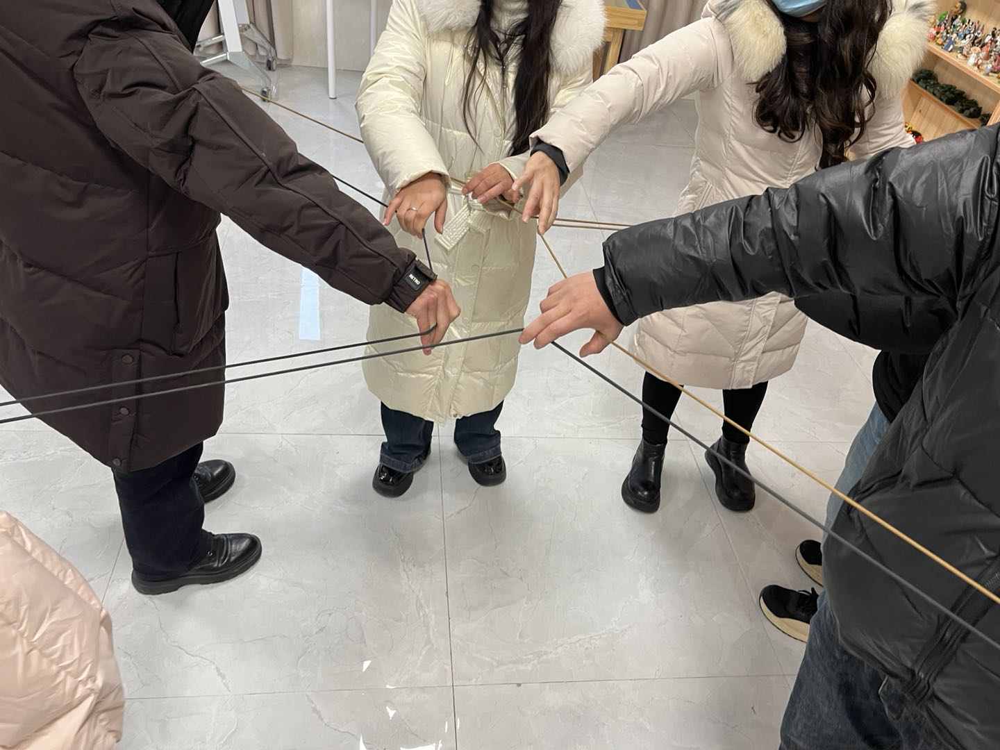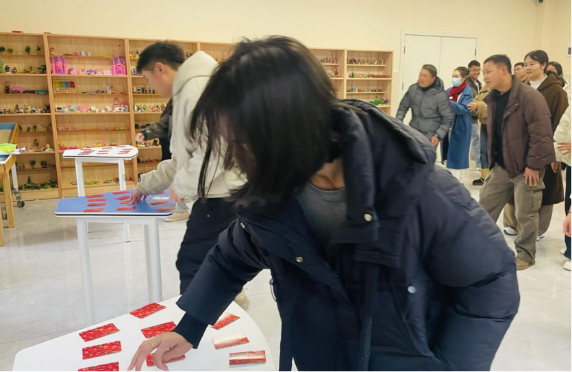 主体环节的“资源争夺战”充满挑战与乐趣。“无声的秩序”任务中,各小组在静默状态下依靠肢体语言、眼神交流完成绳形搭建,凝聚了团队力量;“信任资源岛”环节,戴上眼罩的“探索者”在队友的精准引导与对手的干扰中寻找资源卡,极致考验了团队信任与沟通技巧。大家在竞争中协作,在压力中成长,深刻体会到信任与策略的重要性。