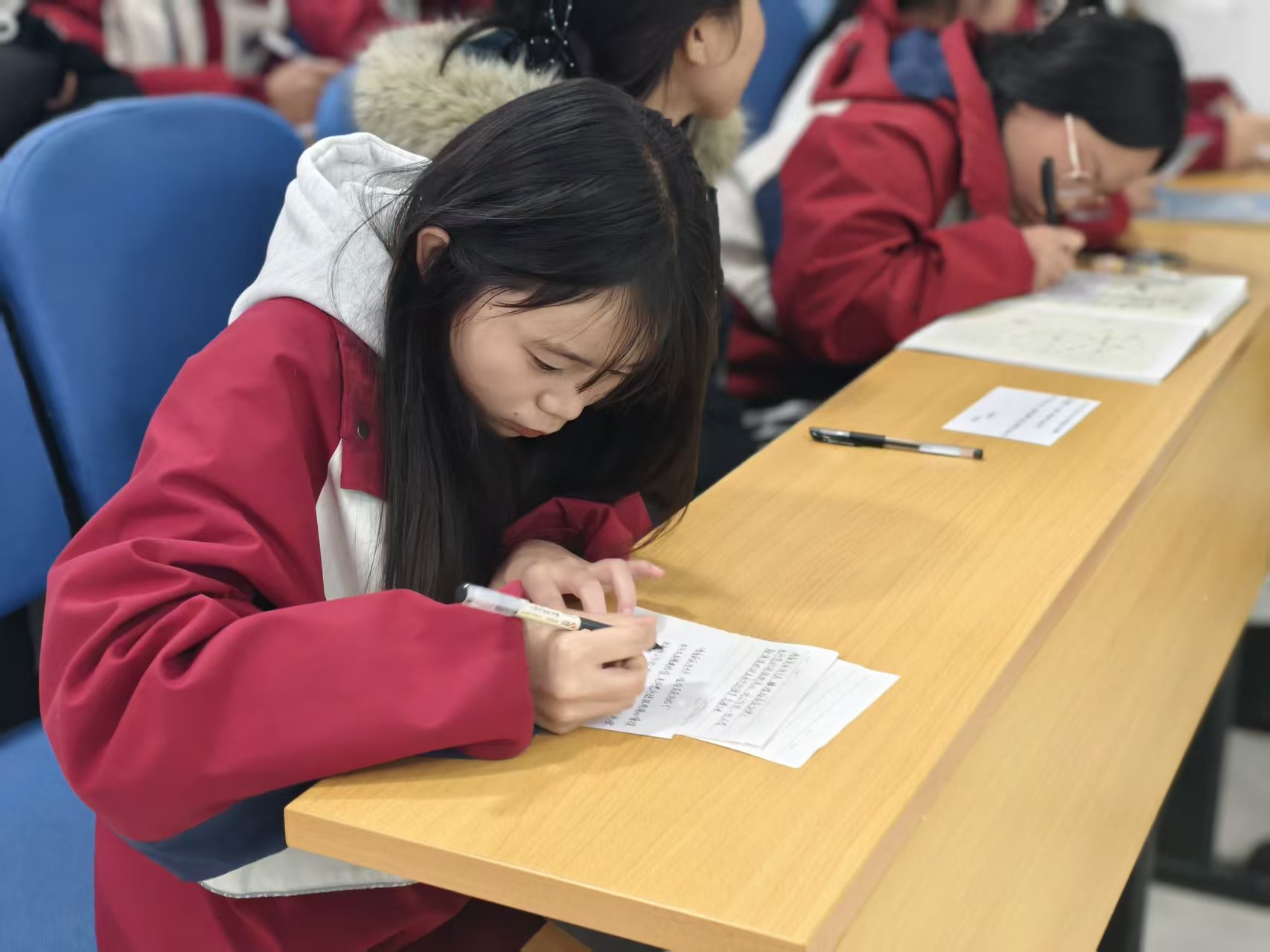 在谈及感恩行动与情感表达时,聂立新结合自身经历引导学生践行感恩。他分享自己从青春期叛逆到最终深切理解父母关爱的成长过程,指出子女报恩不仅在于经济供养,更在于真切的情感陪伴与主动承担家庭责任。在尊师方面,他从“天地君亲师”的传统伦理切入,强调即便现代师生关系形式有所变化,学生对老师的尊重之心仍需持守。他举例说,自己虽明确反对教师节送礼,却在疫情期间意外收到学生寄来的防疫物资,更在毕业后被学生一路追着送别——这些真挚的回馈,让他深刻感受到尊师感恩所带来的温暖力量。讲座最后,团委负责人赵月启动以“感师恩”为主题的三行情书创作活动。要求作品情感真挚、语言精炼且必须原创。优秀作品将在学院图书馆和官方平台展出,作者可获得定制礼品。工作人员现场分发创作卡片后,学生们随即投入创作,十分钟内便完成了情诗并提交,现场氛围温馨而专注。