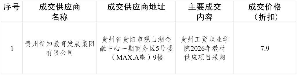 项目名称:贵州工贸职业学院2026年教材供应项目